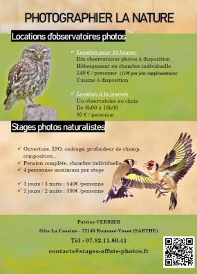 Locations d'Affûts et Stages Photos Patrice VERRIERGîte La Cassine - 72140 Rouessé-Vassé02.43.25.20.87 07.82.11.60.41